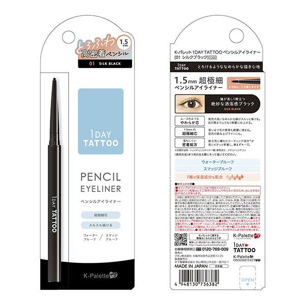 K-パレット 1DAY TATTOO ペンシルアイライナー 超極細アイライナー 1.5mm 高発色 目尻ライン 跳ね上げライン 落ちにくい にじまない 密着処方 K-Palette 正規品 メール便1通2個まで可 ギフト可