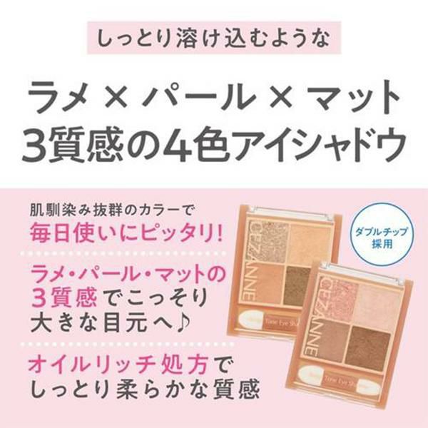 肌馴染み抜群のベージュを基調としたカラー。ラメ・パール・マットの3質感を重ねて、自然にまぶたを強調し奥行のある大きな目元へ。