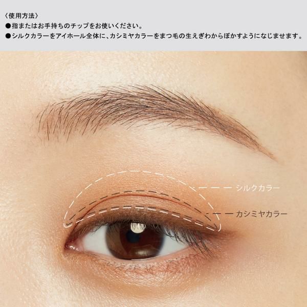 ●シルクカラーをアイホール全体に、カシミヤカラーをまつ毛の生えぎわからぼかすようになじませます。
