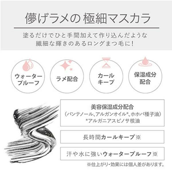 ■繊細な輝きのまつげに仕上がるように艶感のあるラメを配合。普段使いできるナユラルな3色展開でラメのほのかな輝きとロングまつげの繊細さによって儚さと特別感を演出。