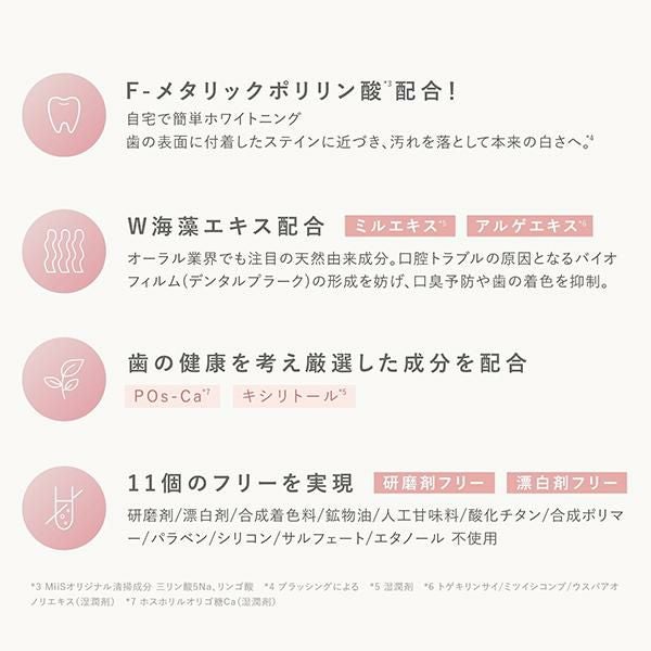 MiiS ミーズ ホワイティクリーム 歯磨き粉 研磨剤フリー MiiSオリジナル清掃成分 W海藻エキス配合 口臭予防 虫歯予防 ロゼミント味 正規品 メール便1通3個まで可 ギフト可