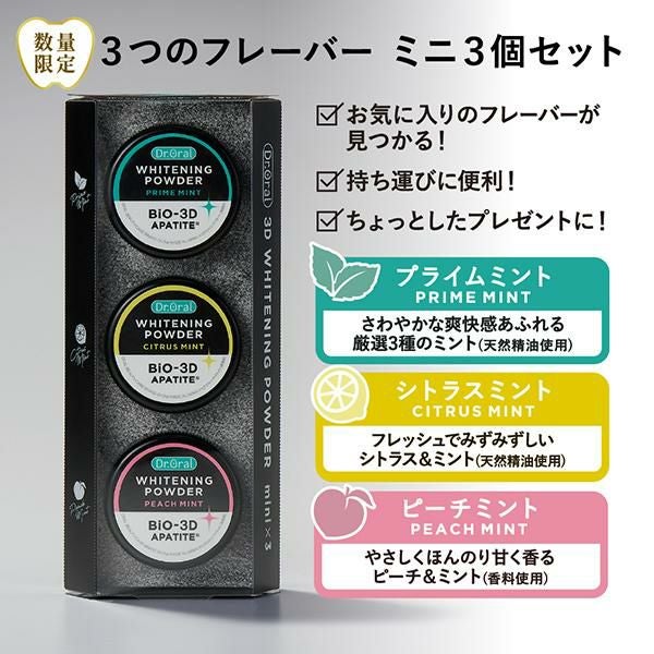 Dr.オーラル 3Dホワイトニングパウダー ミニ3個セット プライムミント シトラスミント ピーチミント 徹底美白 口ケア 保湿剤 正規品 ギフト可