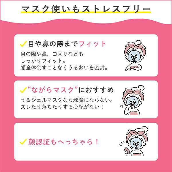 ●【簡単3STEPでスキンケア完了】うるジェルマスクは、簡単3STEPでスキンケアが完了。目や口の際など顔全体を余すことなくぴったりフィットします。