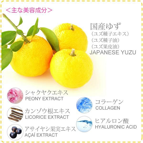 日本人にはなじみの深い国産ゆずの香りに癒されながら毛穴やキメに入り込んだ汚れまでしっかりオフ。