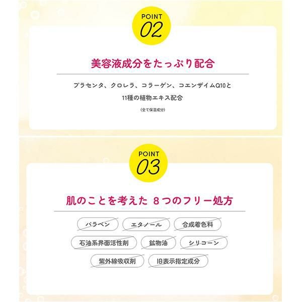 水、グリセリン、プロパンジオール、ソルビトール、ラウラミドプロピルベタイン、メチルパーフルオロブチルエーテル、メチルパーフルオロイソブチルエーテル、ココイルグリシンK、デシルグルコシド、プラセンタエキス、アーチチョーク葉エキス、ノイバラ果実エキス、乳酸桿菌/ハス種子発酵液、乳酸桿菌/ハイビスカス花発酵液、クロレラエキス、マンダリンオレンジ果皮エキス、水溶性コラーゲン、ユビキノン、ワイルドタイムエキス、カミツレ花エキス、エナンチアクロランタ樹皮エキス、ダイズ種子エキス、ローズマリー葉エキス、サッカロミセス/オオムギ種子発酵エキス、ラウロイルグルタミン酸ジ(フィトステリル/オクチルドデシル)、キサンタンガム、(アクリレーツ/アクリル酸アルキル(C10-30))クロスポリマー、PEG-40水添ヒマシ油、PEG-150、水添レシチン、ヤシ脂肪酸K、ラウリン酸ポリグリセリル-10、炭、香料、オレアノール酸、水酸化K、ペンテト酸5Na、BG、1,2-ヘキサンジオール、トコフェロール、フェノキシエタノール