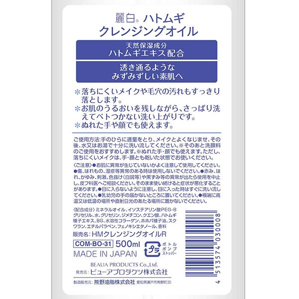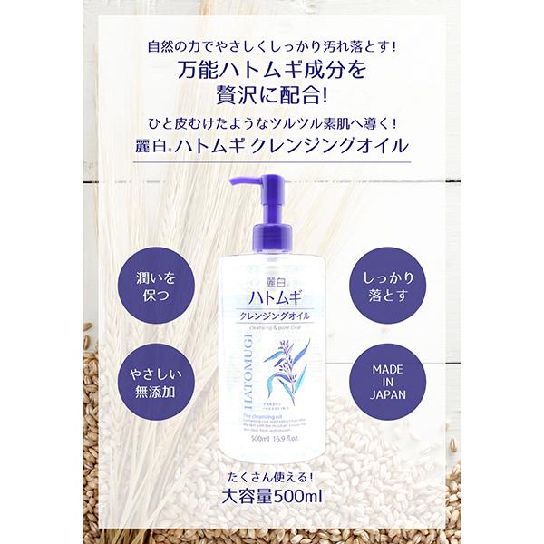 5. 麗白 ハトムギクレンジングオイル 500ml うるおい 天然保湿成分 みずみずしい素肌 落ちにくいメイク 正規品 ギフト可