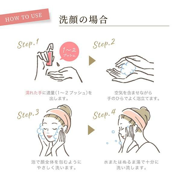水またはぬるま湯を顔全体になじませ、泡立てた後きれいに洗い流してください。