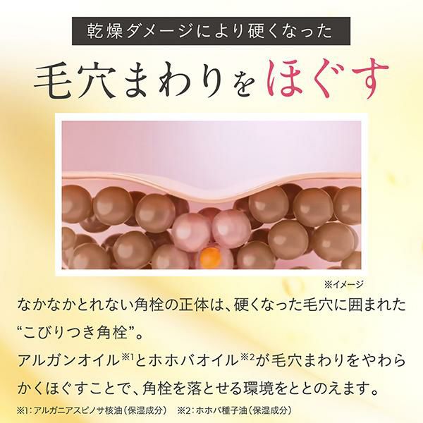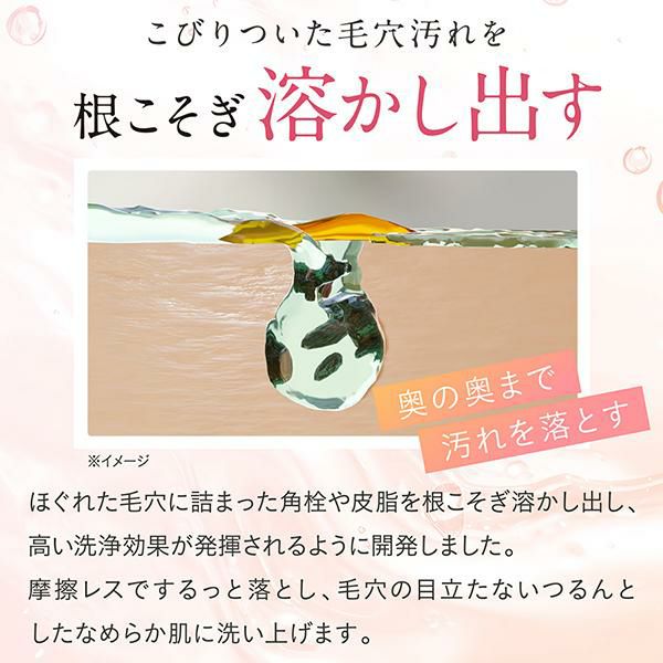 硬くなった毛穴まわりをほぐしながら角栓を溶かし出し、つるんとしたなめらかな素肌に洗い上げます。