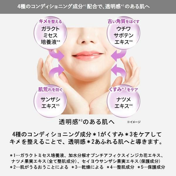 4種のコンディショニング成分※10がくすみ※6をケアしてキメを整えることで、透明感※11あふれる肌へと導きます。
