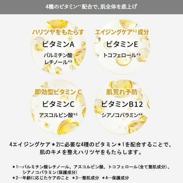 エイジングケア※13に必要な4種のビタミン※12を配合することで、お肌のキメを整えハリツヤをもたらします。