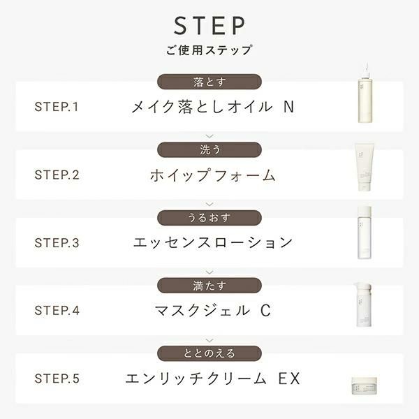 こちらは【メイク落としオイル N&ホイップフォーム&エッセンスローション&マスクジェル C&エンリッチクリーム EX】の販売ページです。