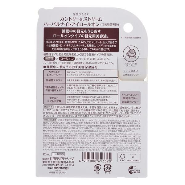 カントリー&ストリーム ハーバルナイトアイロールオン 睡眠中 おやすみ前 ロールオンタイプ 目元用美容液 保湿 ハーブ 植物性オイル 香草エキス 目元ケア 正規品 メール便1通2個まで可 ギフト可