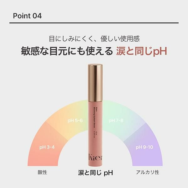 Kiera Blooming Eyelash Serumは、 とろみのあるセラムがまつ毛の根本から 先端までしっかり密着し、うるおいヴェールで包み込み まつ毛ケア初心者の方でも簡単に塗ることができます。