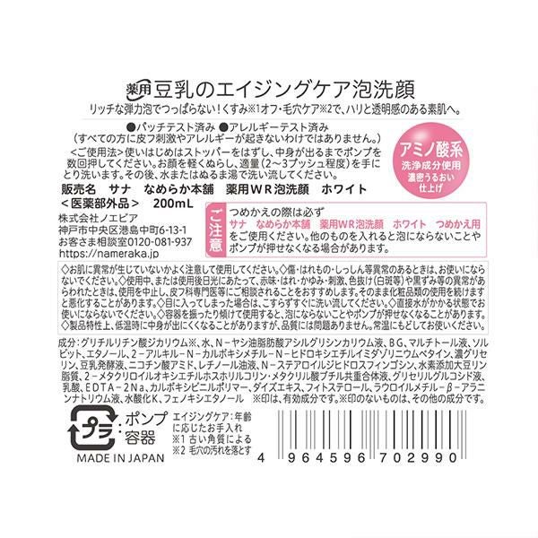 つめかえの際は必ず サナ なめらか本舗 薬用WR泡洗顔 ホワイト つめかえ用をご使用ください。他のものを入れると泡にならないことやポンプが押せなくなる場合があります。