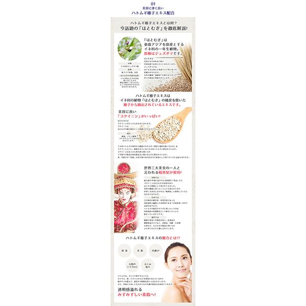●ハトムギの美肌効果で美しく透き通るようなお肌に導きます。