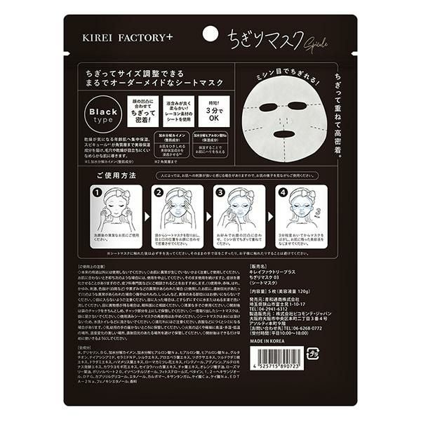 5. キレイファクトリープラス ちぎりマスク 03 ブラック サイズ調整 密着 うるおい 集中保湿 正規品 メール便1通1個まで可 ギフト可