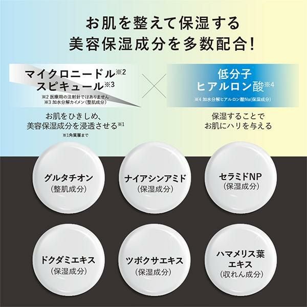 マイクロニードルスピキュールと低分子ヒアルロン酸を配合のBlack。乾燥が気になる年齢肌へ集中保湿。スピキュール※1が角質層まで美容保湿成分を届け、毛穴や乾燥が目立ちにくいなめらかな肌に導きます。