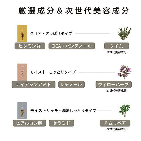 10種のビタミン群※1が肌のキメを整え、シカパンテノール※2が角質層のすみずみまで水分を補い、みずみずしいお肌へ。 次世代成分の「タイムエキス※3」が、乾燥による肌荒れを防ぎ、年齢とともに気になるくすみ※4に潤いを与えてアプローチします。