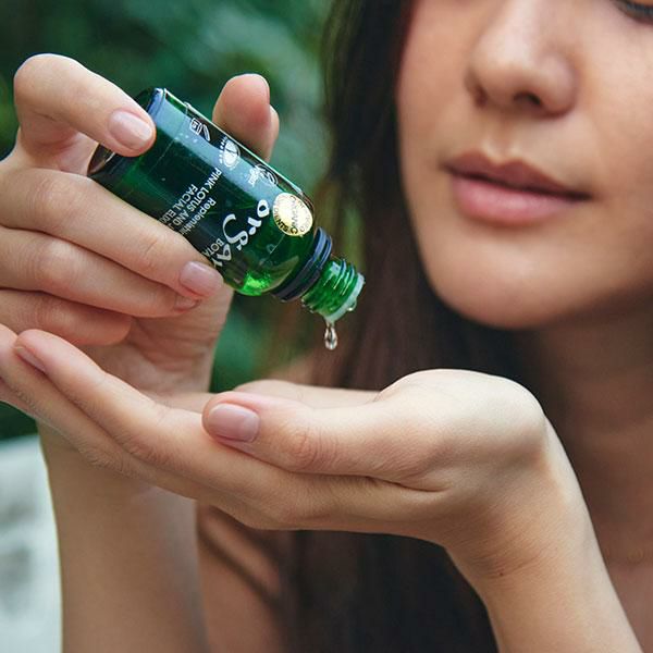 貴重なピンクの蓮花とジャスミンの香りが特徴的な、肌本来の力をサポートする植物100%の美容オイル。