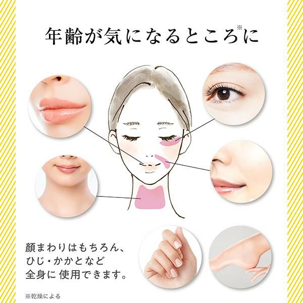 目元、口元、首、デコルテ、手の甲、爪、ひざ、ひじ、かかとなど、乾燥が気になる場所どこでもお使いいただけます。