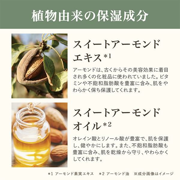 ヒマワリ種子油、アーモンド油、グリセリン 、ベヘン酸グリセリル、ステアリン酸グリセリル、イソステアリン酸水添ヒマシ油、香料、トコフェロール、アーモンド果実エキス
