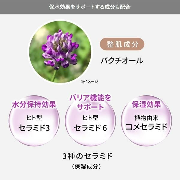 低刺激ながら高いエイジングケア※7効果を持ち「次世代レチノール」とも呼ばれるバクチオール※8やバリア機能をサポートし外部刺激からの皮膚の保護効果がある3種のセラミド※9を配合。