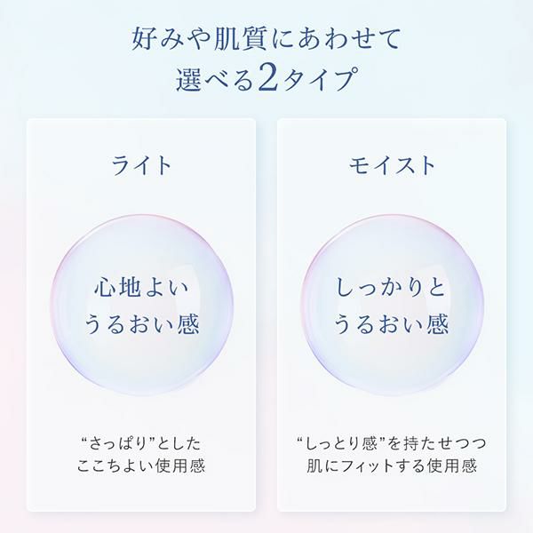 ●みずみずしくうるおい、キメふっくら・ハリ肌へ。肌にスッとなじみ、うるおいと透明感あふれるしなやかなハリ肌にととのえるエイジングケア*1薬用美白化粧水。(*1 年齢に応じたお手入れ)