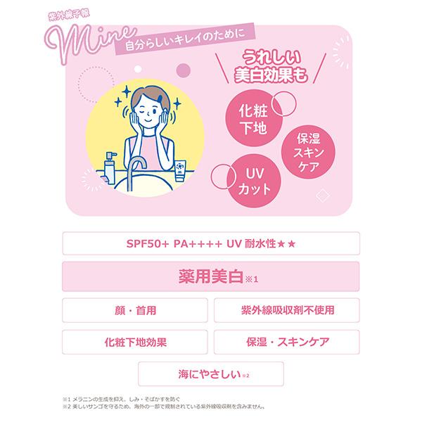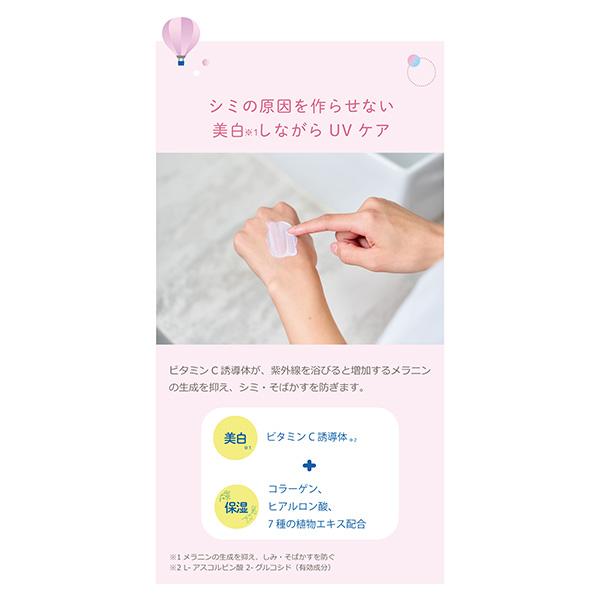 紫外線をしっかりガード、同時に美白(※)もできる薬用美白成分配合のUVクリーム。有効成分のビタミンC誘導体が紫外線を浴びると増加するシミ(※)の原因を作らせない!保湿成分のコラーゲン、ヒアルロン酸、7種の植物エキス配合。皮脂崩れ防止&毛穴をカバーし、白浮きしないから化粧下地にも。ベタつかずやさしい塗り心地。