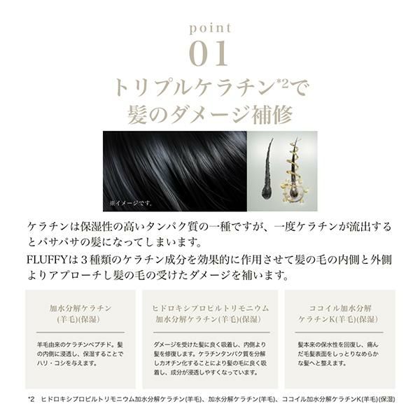 他の画像を見る フラッフィーフォーム FLUFFY FORM ケラチン配合シャンプー&トリートメント 詰め替え用 250ml うるおう 保湿 洗浄 スキンケア 水分を保持 頭皮 髪 美髪へ 正規品 ギフト可 日付指定可 10%OFF セール価格 ¥ 2,640 税込 カートに入れる お気に入りに登録する