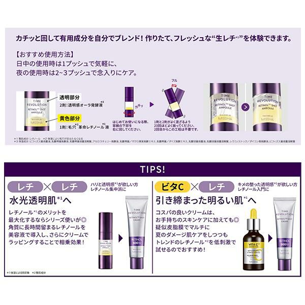 他の画像を見る ミシャ タイムレボリューション レチノール500美容液 人工香料FREE 整肌成分 うるおい 透明感 角層まで 正規品 ギフト可 日付指定可 10%OFF セール価格 ¥ 2,750 税込 カートに入れる お気に入りに登録する
