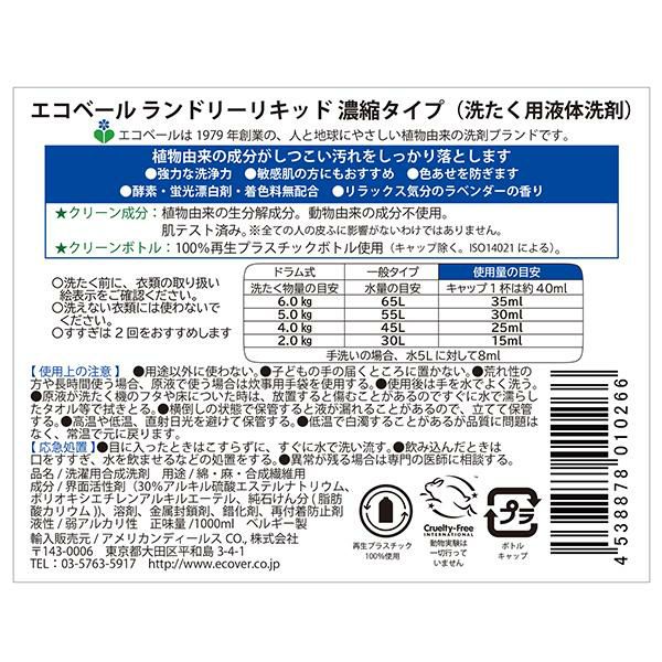 他の画像を見る 【11/23から!10%クーポン】エコベール ランドリーリキッド濃縮タイプ 1000ml×3個セット 濃縮タイプ 強力 敏感肌 着色料無 正規品 ギフト可 日付指定可 送料無料 10%OFF セール価格 ¥ 5,874 税込 詳細を見る お気に入りに登録する 在庫切れ