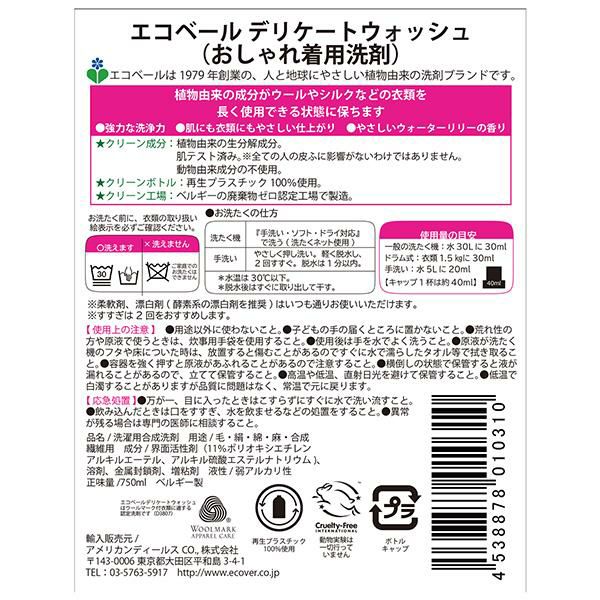 他の画像を見る 【11/23から!10%クーポン】エコベール デリケートウォッシュ おしゃれ着用洗剤 750ml×4個セット 強力 やさしい クリーン成分 正規品 ギフト可 日付指定可 10%OFF セール価格 ¥ 5,192 税込 カートに入れる お気に入りに登録する