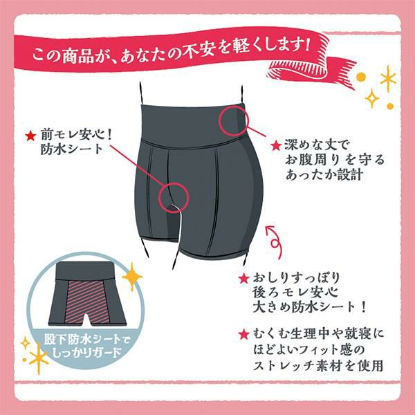 他の画像を見る 【12/13から!10%クーポン】西川 まもら騎士 生理用オーバーパンツ まもらナイト ブラック 安心 ストレッチ素材 快適 経血漏れ 横モレ ずれモレ 不安 ガード 軽量 生理 月経 防水 速乾 洗濯 フェムケア フェムテック 正規品 ギフト可 フェムケア 10%OFF セール価格 ¥ 3,278 税込 カートに入れる お気に入りに登録する