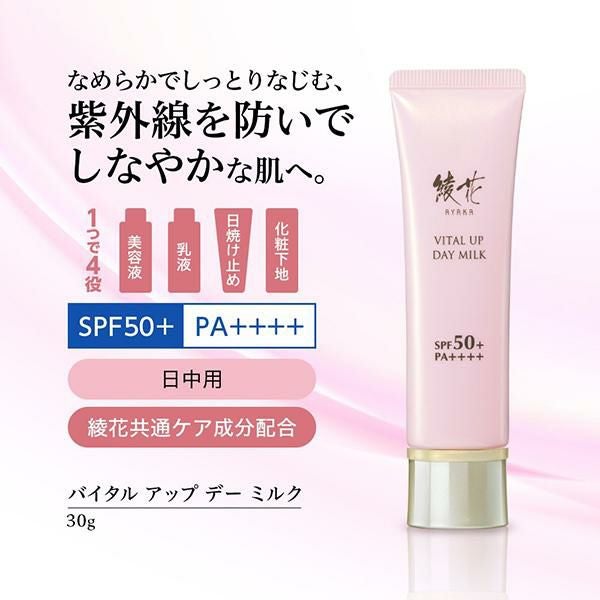 他の画像を見る 綾花 バイタル アップ デー ミルク 美容液 乳液 クリーム 日焼け止め 化粧下地 日中用乳液 紫外線 ハリ しなやかな肌 正規品 ギフト可 日付指定可 10%OFF セール価格 ¥ 2,640 税込 在庫切れ 詳細を見る お気に入りに登録する