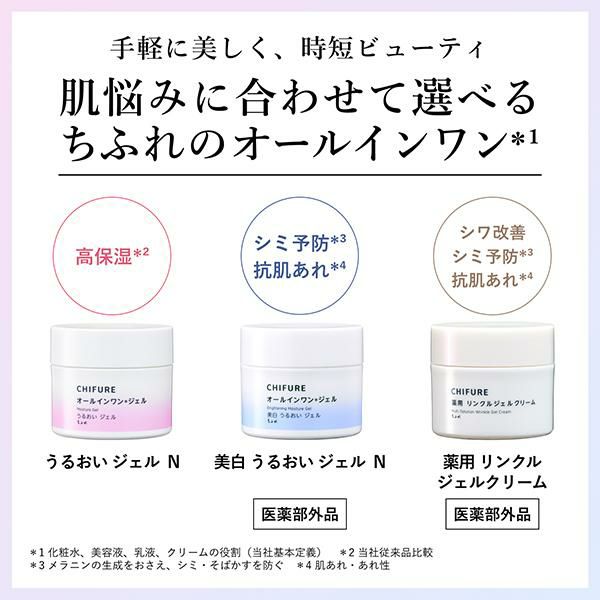 他の画像を見る ちふれ うるおい ジェル N 高保湿 オールインワン 化粧水 美容液 乳液 クリーム 化粧下地 正規品 ギフト対応可 日付指定可 10%OFF セール価格 ¥ 1,100 税込 カートに入れる お気に入りに登録する